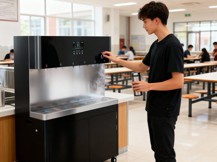 痛点解决:替代桶装水,智能运维省成本,8 寸彩屏 + 触控按键,办公饮水高效省心。