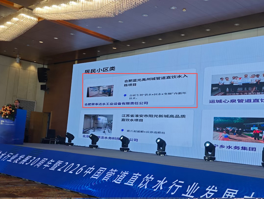 —合肥蓝光禹州城管道直饮水入栋项目入选居民小区类优秀案例—